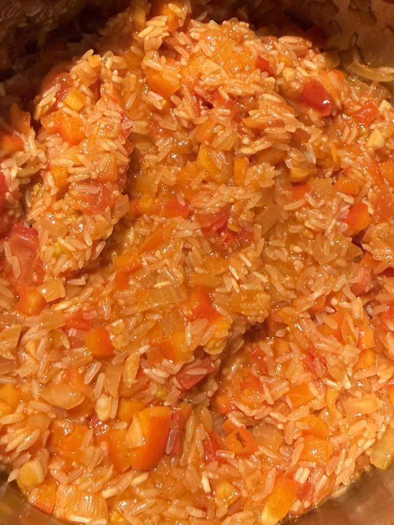 Arroz de Camarão heißt ganz einfach: Reis mit Garnelen. Das Gericht ist nicht trocken wie eine Paella, sondern eher sämig, manchmal fast suppig, mit einer tiefen Umami-Basis und der Süße von Garnelen und Tomaten.