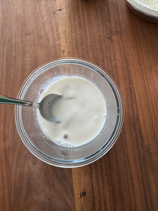We place the yeast mixture in a warm spot (for example, on a sunny windowsill or in the oven with only the light on, without any additional heat) and wait until the yeast starts to bubble slightly and do its work. Due to a concert, this phase, which usually takes about 15 minutes, took a little longer than usual this time (about 3 hours). But this didn’t harm the dough at all – quite the opposite!