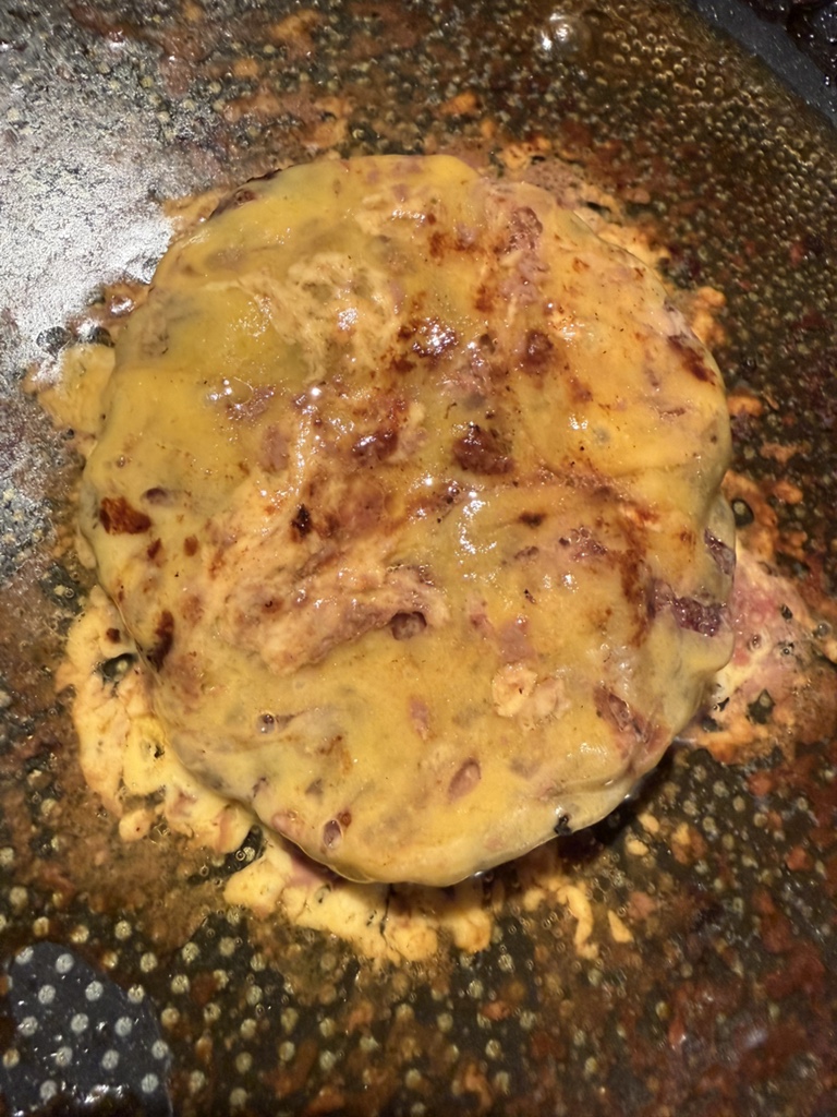 When it has almost reached the desired point, we place slices of cheddar on the meat and put a lid on the pan. This way, the cheese melts in no time.