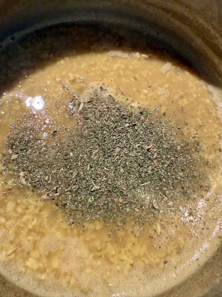 Let it simmer gently for another 20 minutes so that all the flavours develop and blend together. During this time, the dal will become increasingly creamy. Now season with kasoori methi, which is dried fenugreek and has the flavour most commonly associated with curry powder. Rub the dried leaves finely over the dal between your palms.