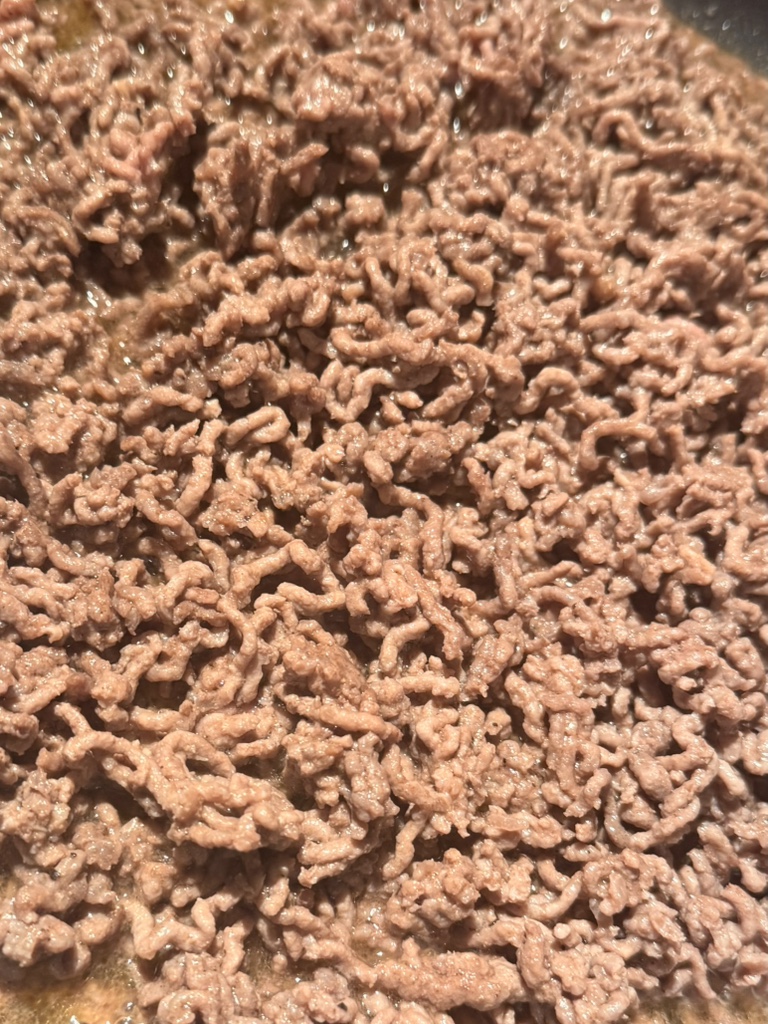 Brown the minced beef briefly in a little neutral oil in a hot pan. Place it in the hot pan and leave it to sear. Only when it has browned well on the bottom of the pan should it be turned. Then season with salt and pepper (both black and white work well here), leave it to cook again, and only now should you use a wooden spoon to break it up into crumbs and then immediately remove it from the pan.