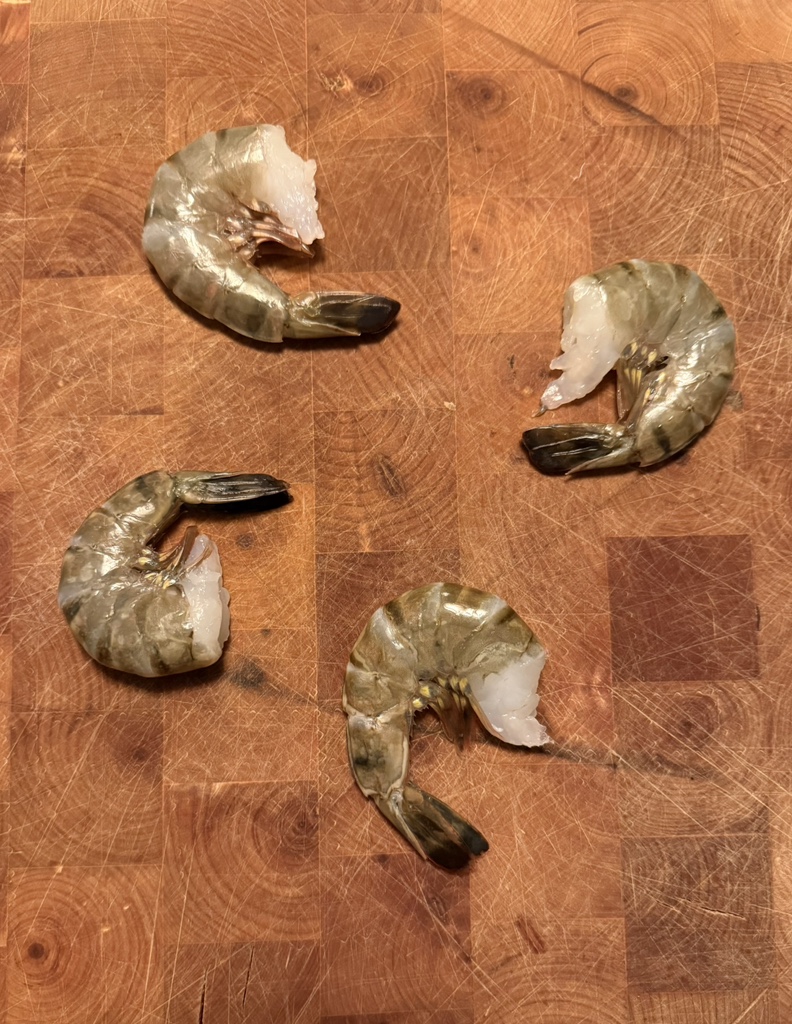 Gamberetti, kleine bis mittelgoße Garnelen, werden geschält und gewaschen, der Darm am Rücken wird entfernt. Hier könnt ihr euch verschiedene Techniken dazu ansehen.