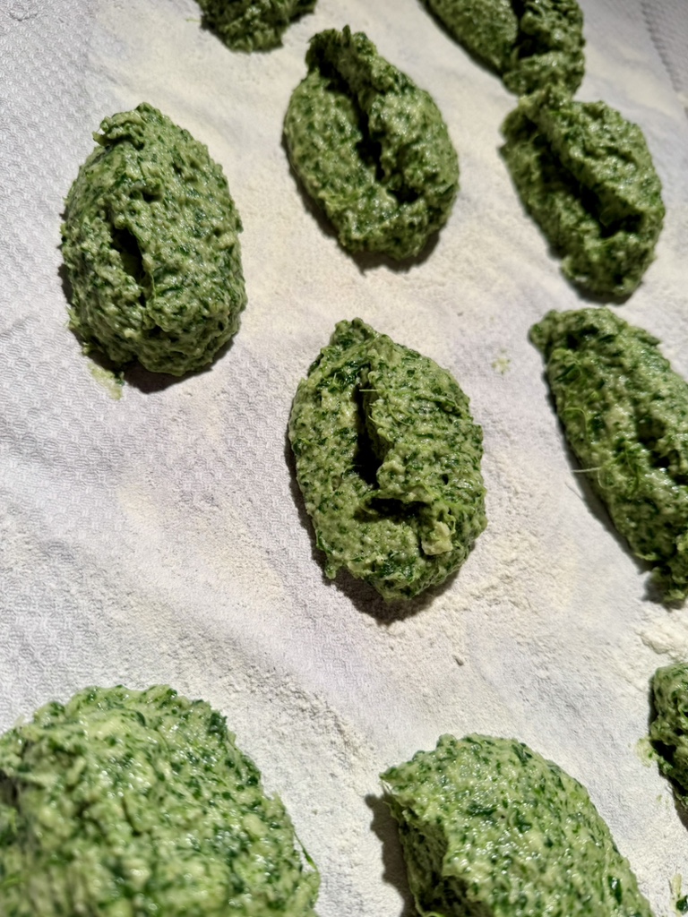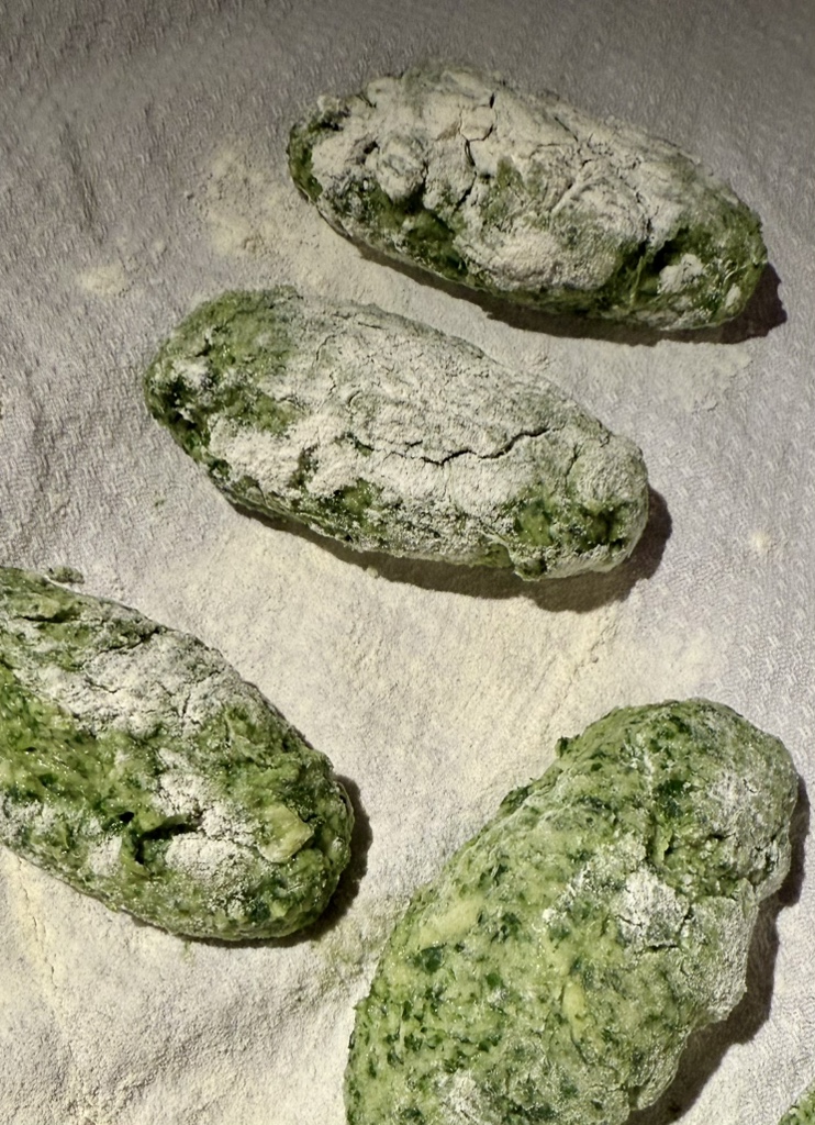 Die besten Strangolapreti bestehen soweit wie irgend möglich aus Spinat. Das macht die Sache zwar nicht einfacher, aber auch nicht übermäßig kompliziert.